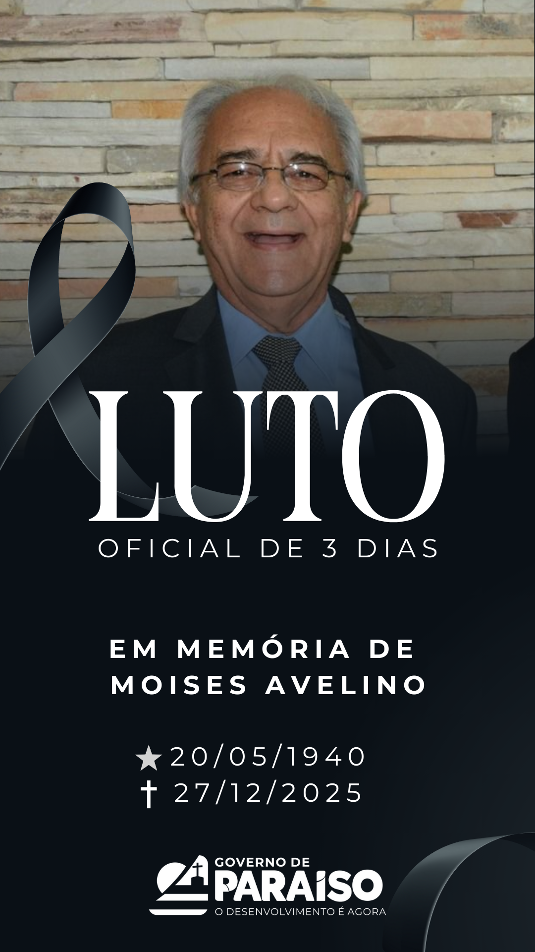 Prefeitura de Paraíso lamenta falecimento de ex-prefeito Moisés Nogueira Avelino e decreta luto…