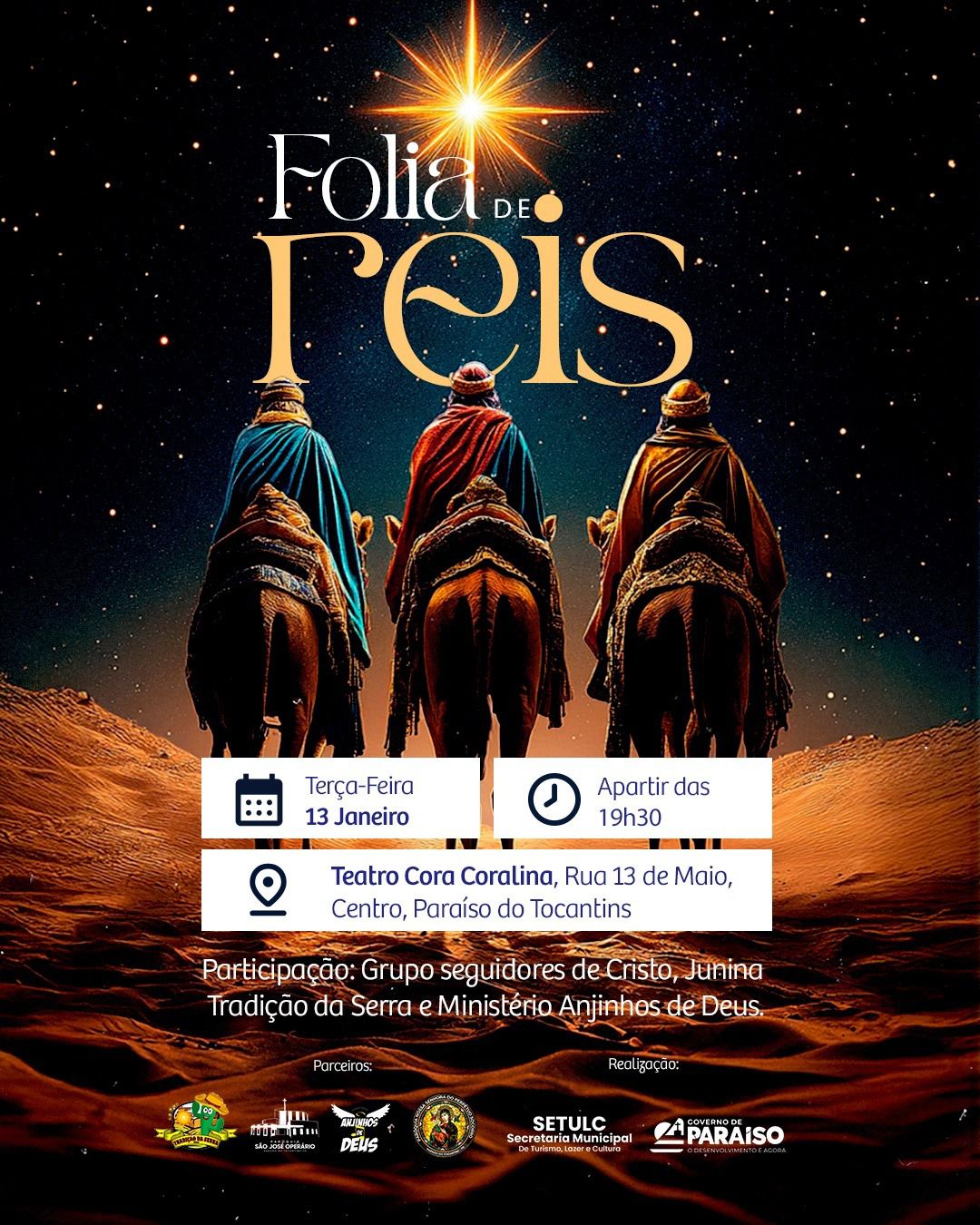 Prefeitura de Paraíso do Tocantins convida população para a tradicional Folia de Reis no Teatro Cora…