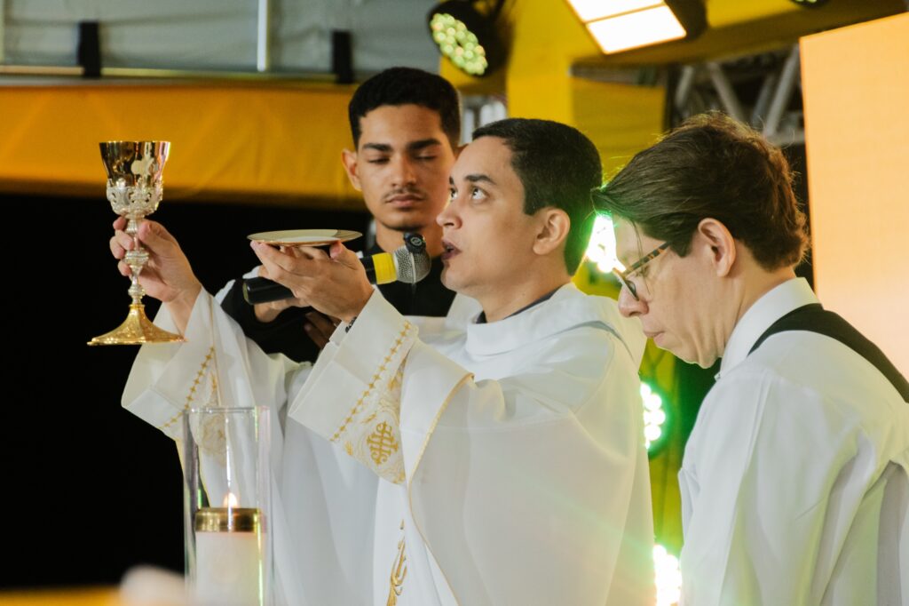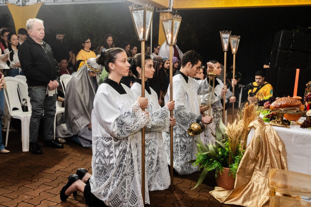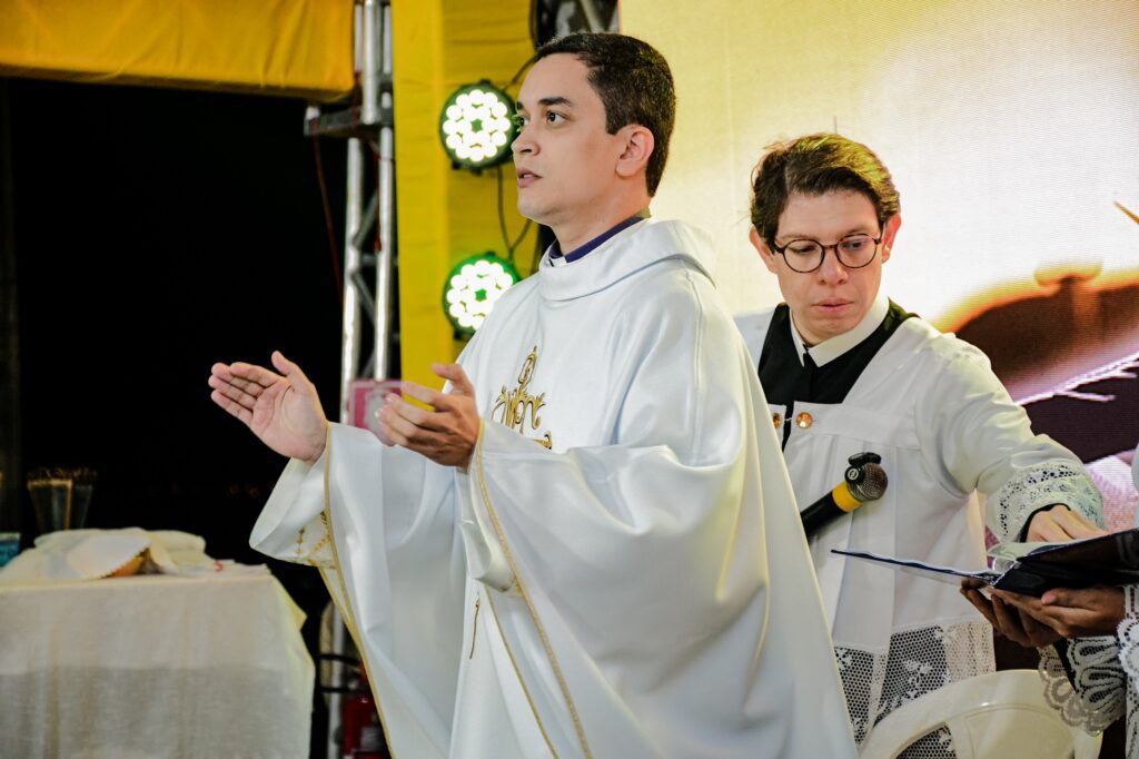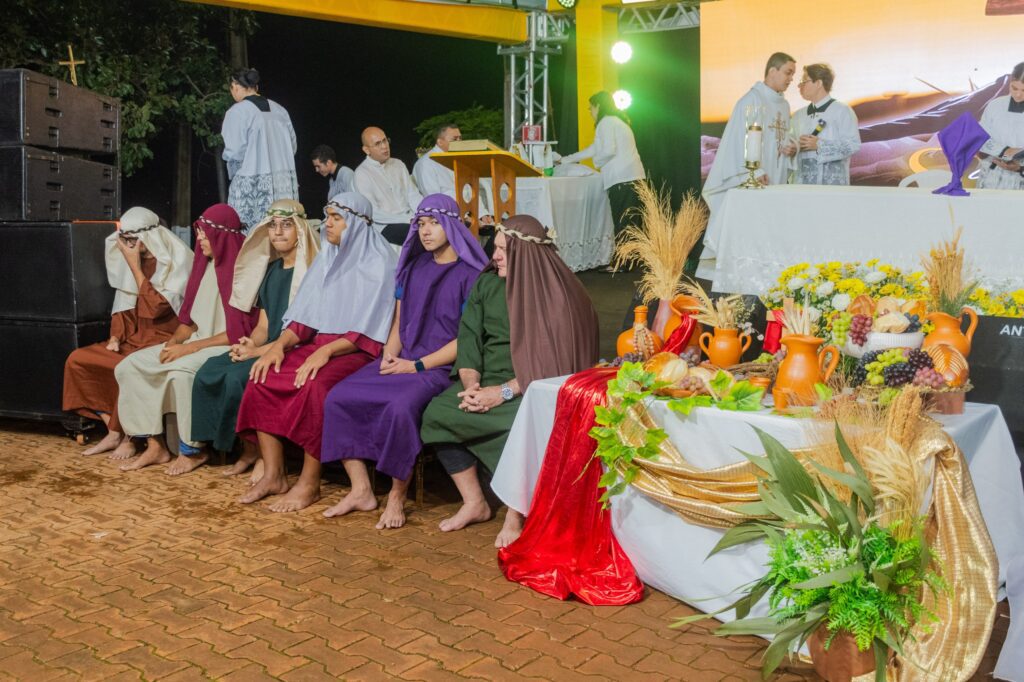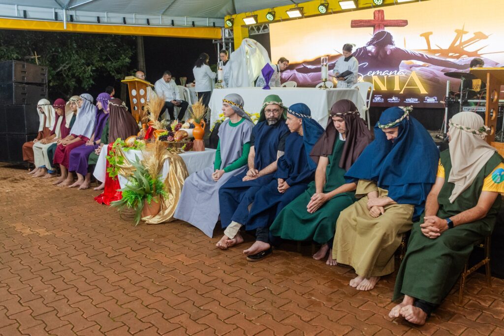 Um dos principais momentos da noite foi o rito do Lava-pés, que relembra o gesto de Jesus Cristo ao lavar os pés dos discípulos, como sinal de humildade. A celebração também marcou a Instituição da Eucaristia, fundamento da fé católica. Durante a homilia, o padre Kaíque Batista destacou o gesto de Jesus como a suprema lição de humildade, serviço e amor fraterno, reforçando que Ele se prostrou diante de todos os discípulos, inclusive daquele que mais tarde o trairia.