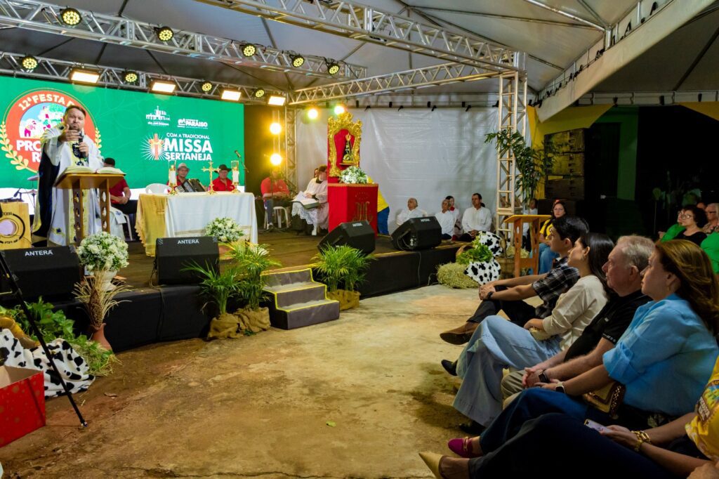 “Gratidão a Deus, muita fé no meu coração, muito respeito ao meu povo, sempre prezando pela justiça e pela união. Hoje nós estamos comemorando a 12ª Festa do Produtor Rural, um evento que representa muito para a nossa comunidade. Desejo as boas-vindas a cada um de vocês e peço que Deus abençoe ricamente esta festividade. Há três anos tomamos a decisão de realizar a Missa Sertaneja neste ambiente para fortalecer também a comunidade, e tenho certeza de que acertamos desde o início”, afirmou o prefeito Celso Morais.