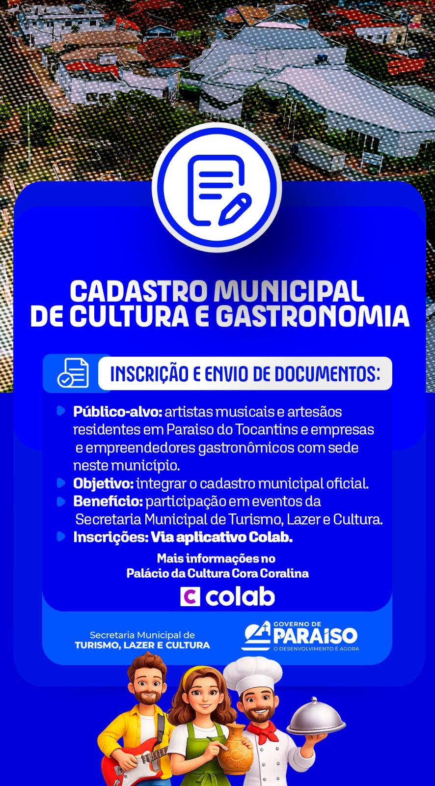 Prefeitura abre inscrições para o Cadastro Cultural e Gastronômico 2026 em Paraíso do Tocantins