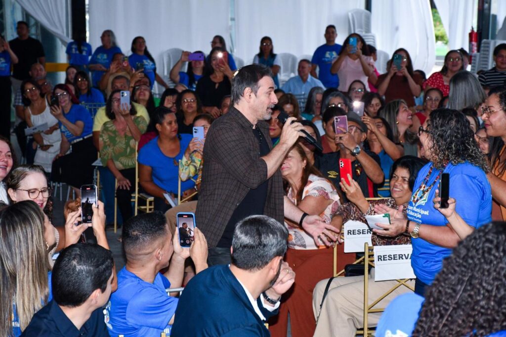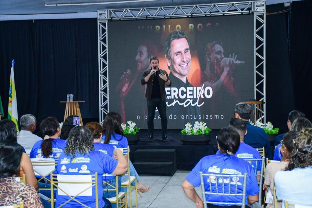 A abertura contou com a palestra “O Poder do Entusiasmo”, ministrada por Murilo Rosa, que trouxe reflexões sobre motivação, atitude e o impacto do entusiasmo na prática educacional.