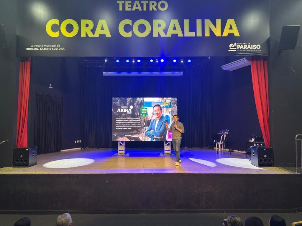 Na tarde desta quinta-feira (2), o auditório do Teatro Cora Coralina recebeu a palestra “Como Posicionar Seu Destino e Atrair Mais Turistas”, ministrada pelo consultor Thiago Akira, referência nacional em marketing e tecnologia aplicados ao turismo. O evento foi voltado para empresários, profissionais do setor e interessados em ampliar seus conhecimentos sobre marketing turístico.