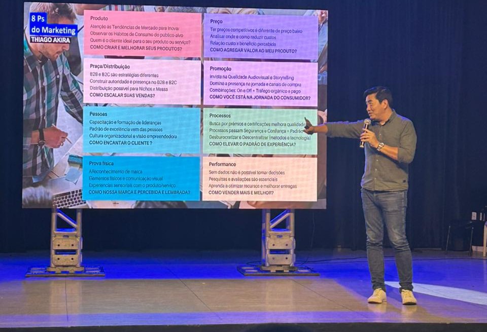 O palestrante Thiago Akira chamou a atenção para a necessidade de uma mentalidade estratégica na divulgação turística. “Eu visito o Brasil todo e agora até o exterior, levando conhecimento de marketing e turismo. E realmente a ideia é transmitir um pouco de mentalidade estratégica. Hoje a gente vê muita gente trabalhando o marketing digital como algo para ganhar seguidor, para viralizar. E não é esse o caminho do turismo. O caminho é ter uma mensagem consistente, consolidar um destino como referência e atrair turistas diferenciados. Destinos como Paraíso têm uma grande oportunidade, porque cada vez mais os turistas buscam experiências específicas, como o turismo religioso, gastronômico e de contemplação. Independente do tamanho do destino ou do nível de maturidade, é possível atrair um fluxo interessante de visitantes”, explicou.