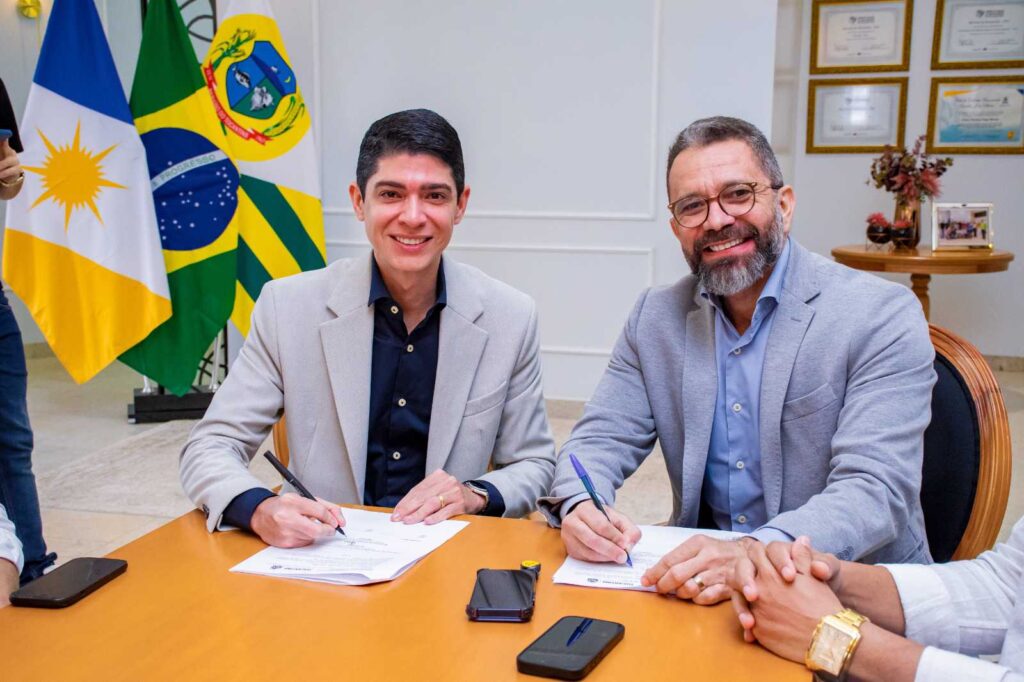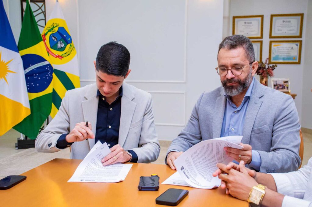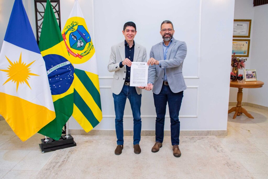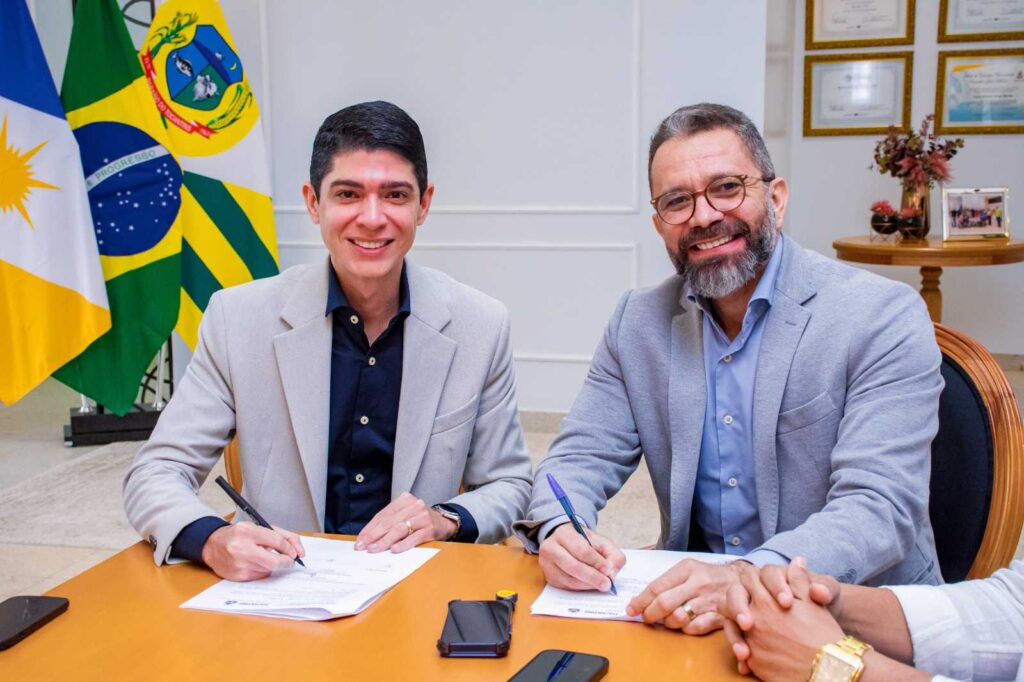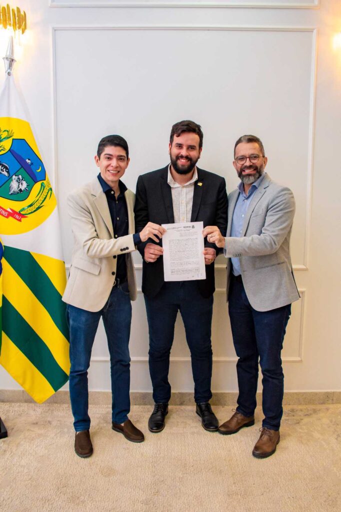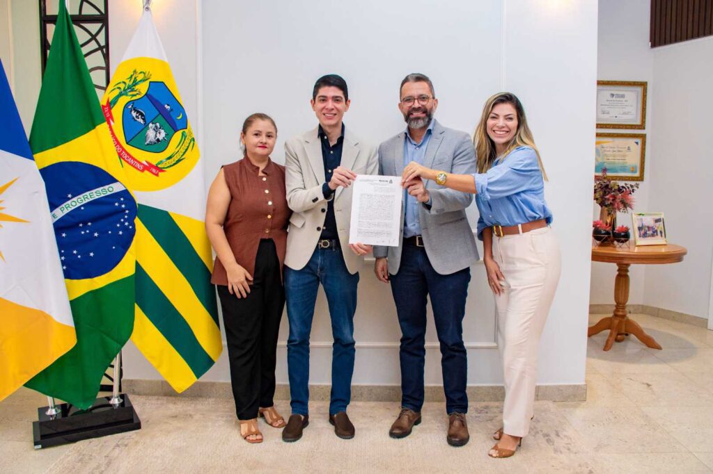 A assinatura do Acordo de Cooperação Técnica nº 01/2026 ocorreu no gabinete do prefeito Celso Morais, com a presença do secretário das Cidades, Habitação e Desenvolvimento Regional do Tocantins (Secihd) e vice-prefeito licenciado, Ubiratan Carvalho.
