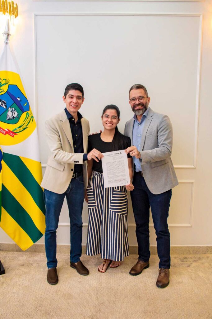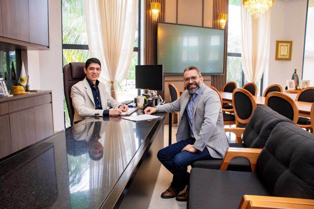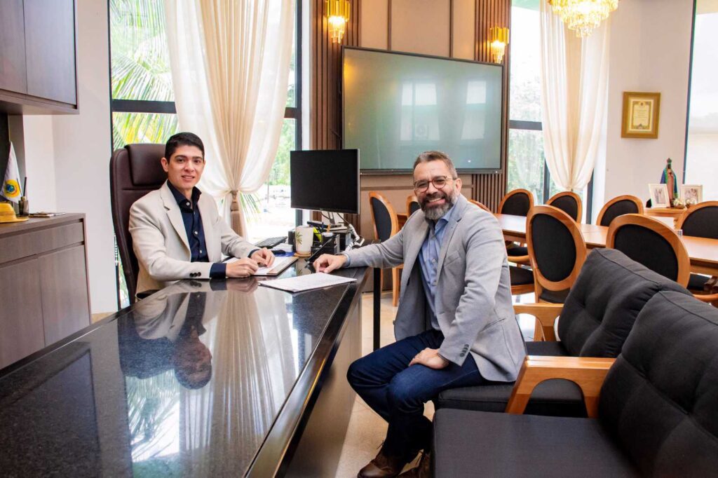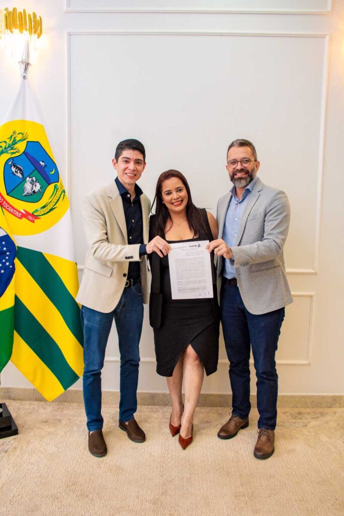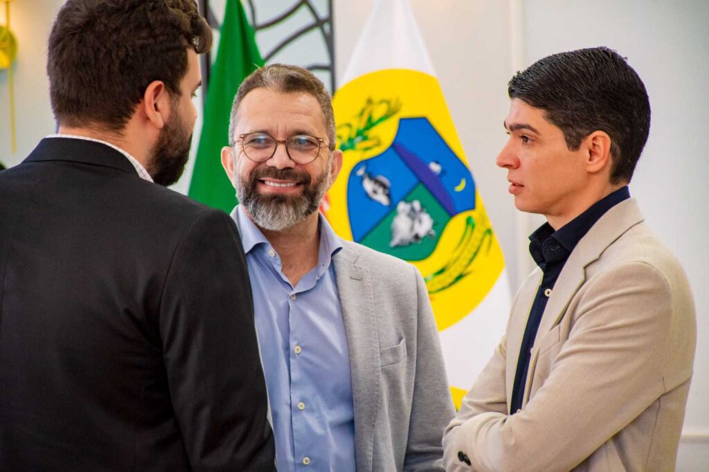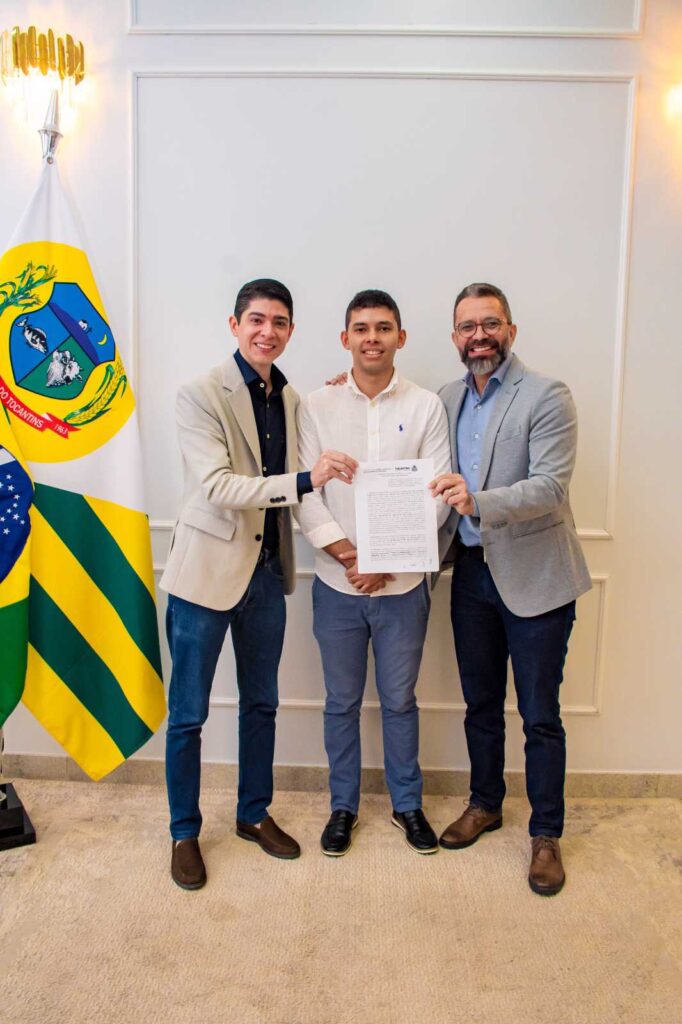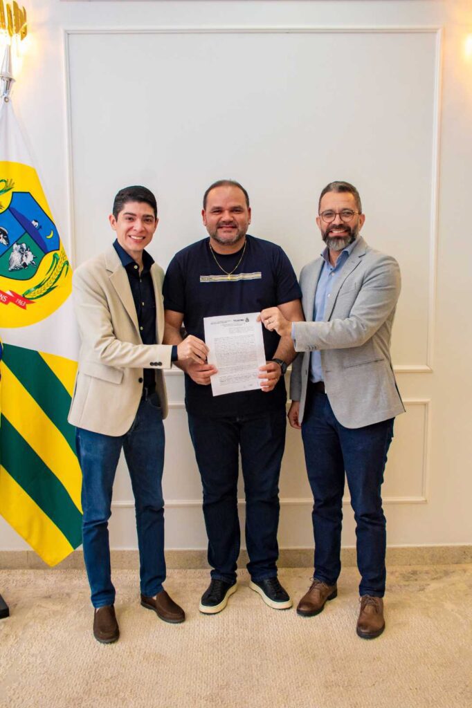 A assinatura do Acordo de Cooperação Técnica nº 01/2026 ocorreu no gabinete do prefeito Celso Morais, com a presença do secretário das Cidades, Habitação e Desenvolvimento Regional do Tocantins (Secihd) e vice-prefeito licenciado, Ubiratan Carvalho.