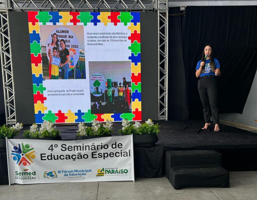 A Prefeitura de Paraíso do Tocantins, por meio da Secretaria Municipal de Educação (Semed), realizou na manhã desta sexta-feira, 5 de dezembro, o 4º Seminário de Educação Especial, com o tema “Práticas Exitosas e Inteligência Artificial”. O encontro, realizado no Clube Solar Acqua Park, integrou a programação do III Fórum Municipal de Educação e reuniu professores, gestores, equipes de apoio e especialistas para dialogar sobre inclusão, inovação e caminhos pedagógicos voltados aos estudantes com necessidades específicas.