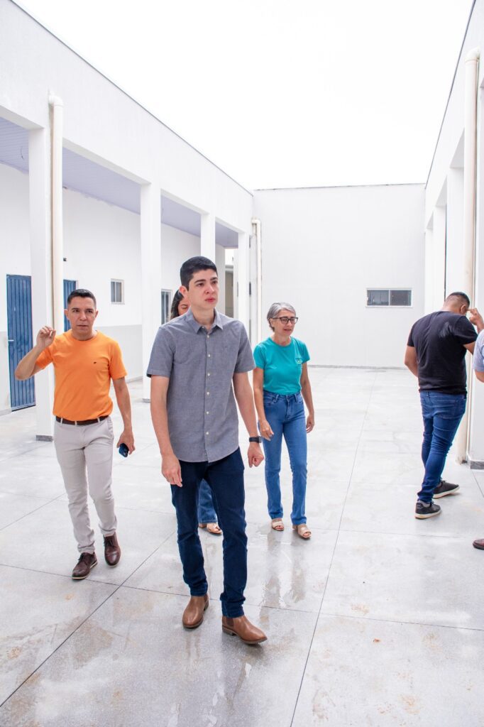 A visita foi acompanhada pelo secretário municipal de Educação, professor Deley Oliveira, equipes da pasta, engenheiros do município e representantes das empresas responsáveis pelas obras.