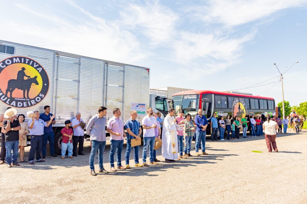 Prefeitura de Paraíso entrega ônibus e baú para caminhão aos Muladeiros, durante abertura de marcha comemorativa