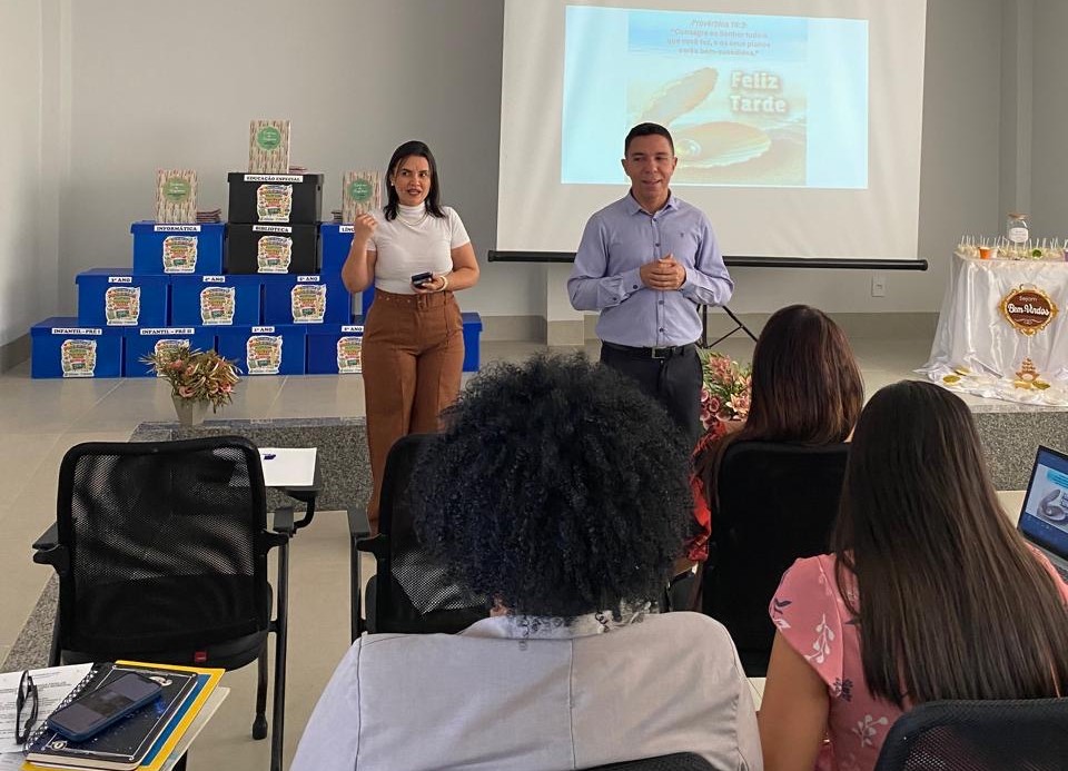 “Acredito que cada um aqui é uma pérola da nossa rede. Pérolas não nascem prontas: elas surgem de processos, de camadas de cuidado, de tempo, de esforço e de vida. Assim também é o trabalho pedagógico. Cada sugestão dada, cada olhar atento, cada orientação construída em parceria vai lapidando nossa prática e revelando o brilho que existe no trabalho de toda a Semed”, acrescentou Giovanda. (Ascom/Fernanda Menta)