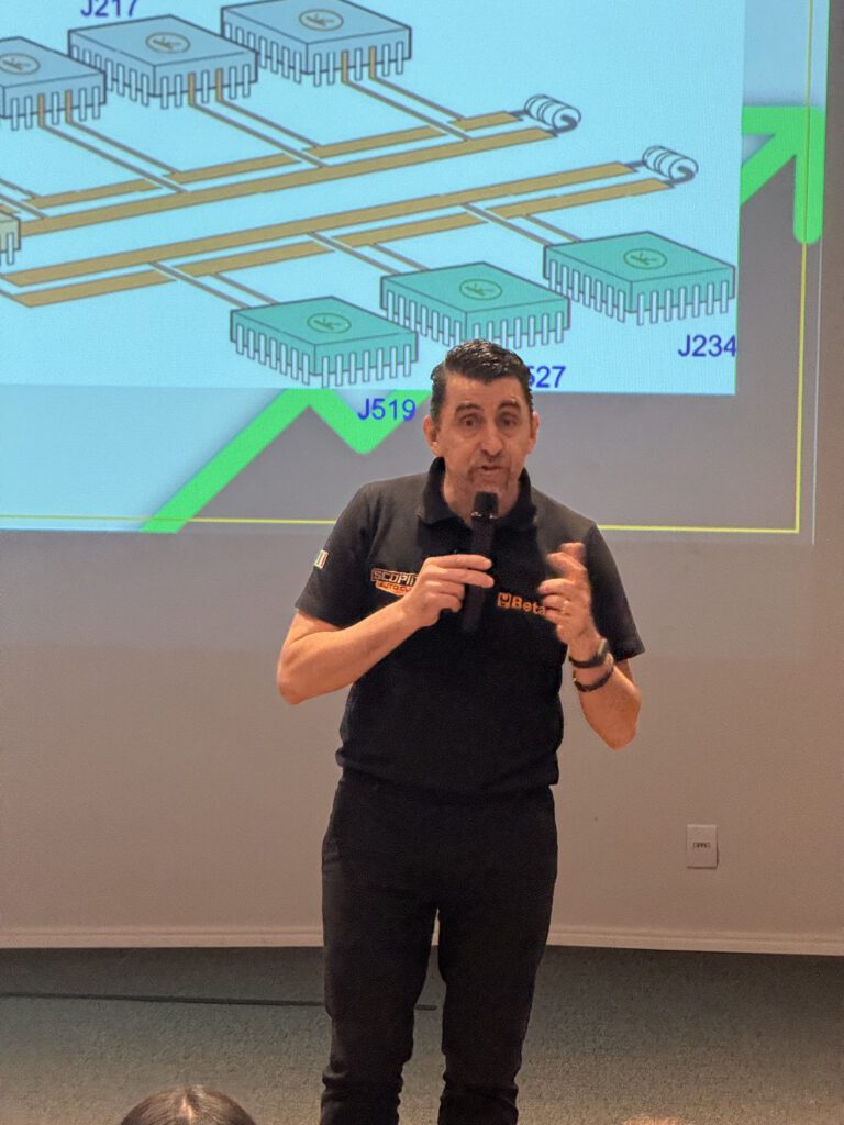 O seminário contou com a presença do Professor Pedro Luiz Scopino, referência nacional em gestão automotiva, que abordou o tema “Rede CAN”, sistema de comunicação entre os módulos e sensores dos veículos modernos. Além da parte técnica, Scopino trouxe conteúdos sobre gestão administrativa e financeira voltados para oficinas mecânicas, permitindo aos participantes vivenciar uma verdadeira imersão de aprendizado e troca de experiências.